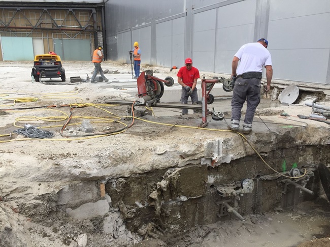Stopniowo w firmie rozwijały się kolejne działy, m.in. cięcie i wiercenie diamentowe w betonie. Kompleksowe podejście do klienta wymagało od nas wprowadzenia kolejnych usług dlatego też rozszerzyliśmy działalność wprowadzając rozbiórki przy użyciu ciężkiego sprzętu wyburzeniowego czy też recyklingu materiałów porozbiórkowych.