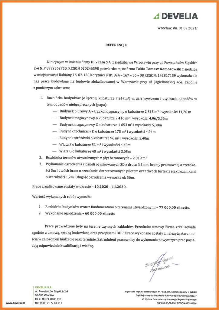 Otrzymasz od nas pełną ofertę z szczegółowym kosztorysem i planem kompleksowej obsługi od uzyskania niezbędnych pozwoleń, po wykonanie robót, wywóz i utylizację odpadów oraz oczyszczenie terenu.