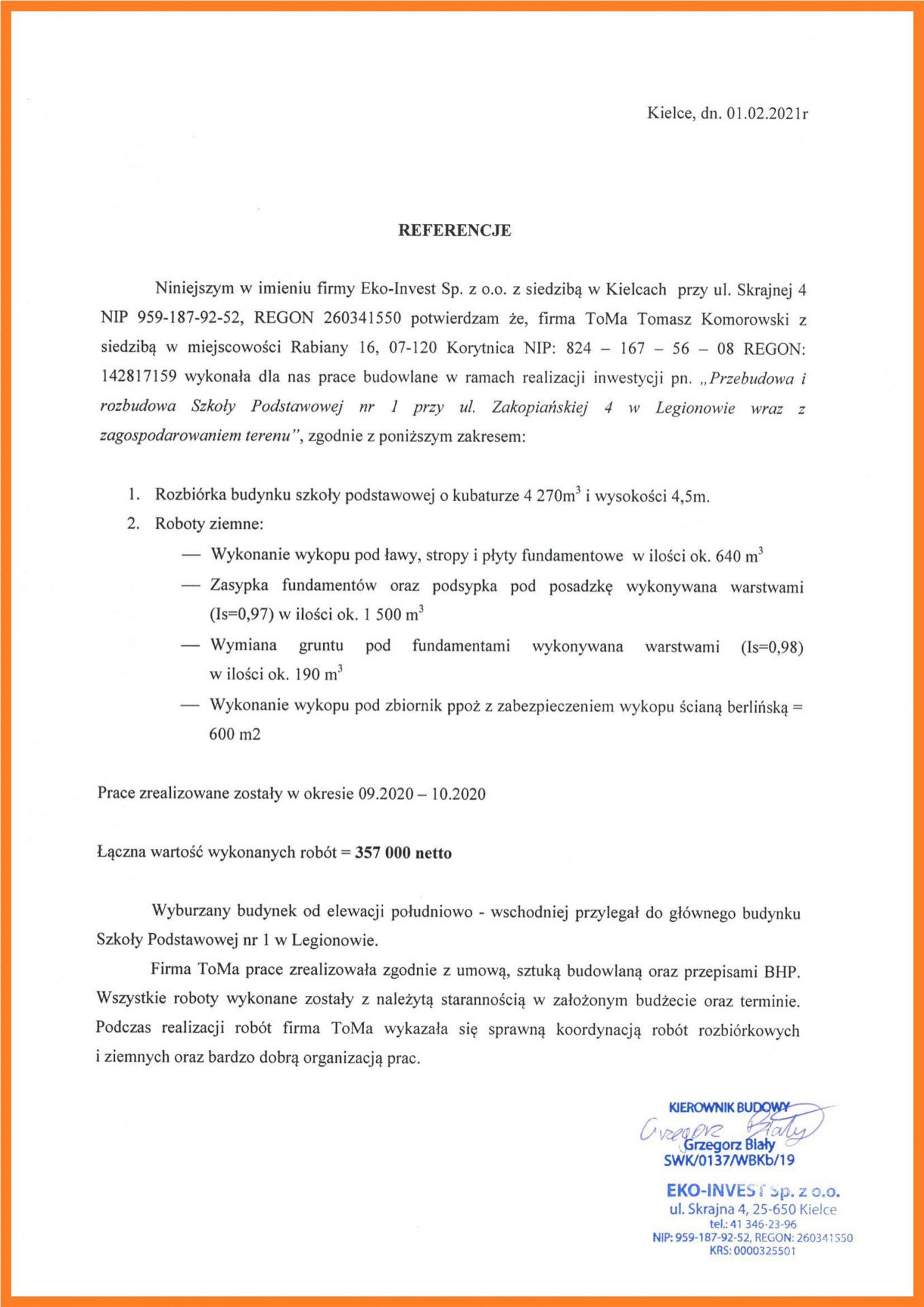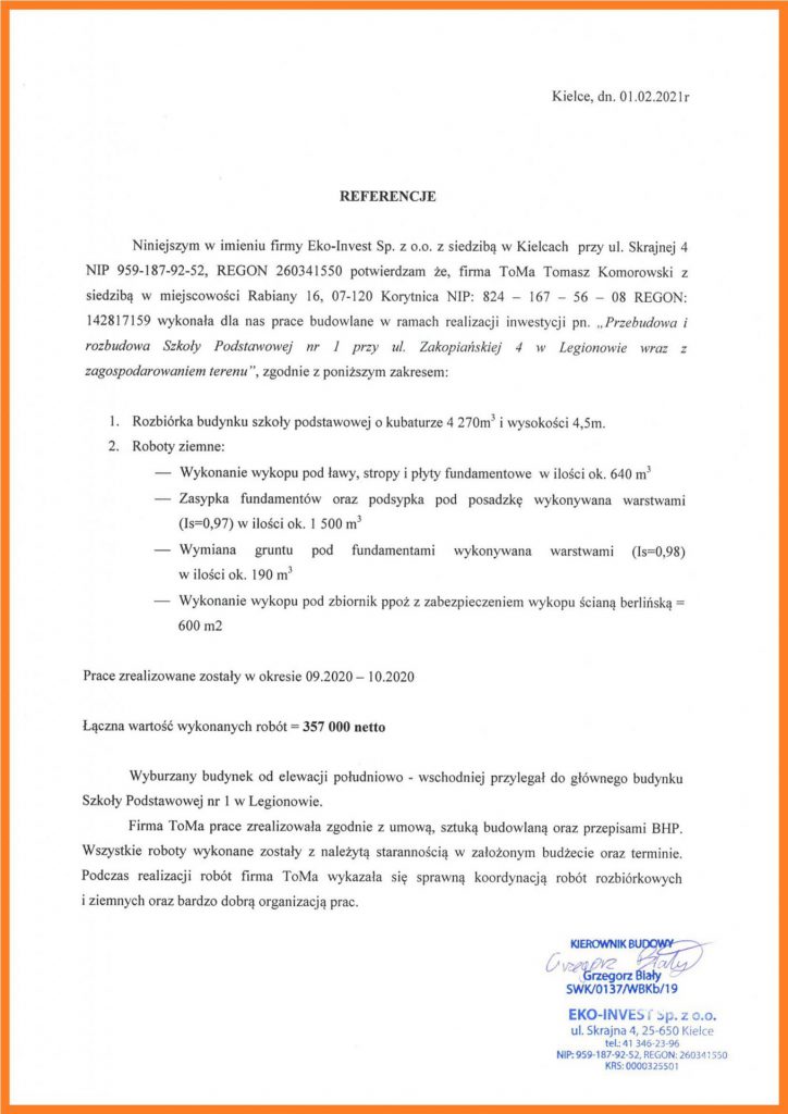 Uzyskane doświadczenie pozwala nam na kompleksowe przeprowadzanie prac, począwszy od uzyskania wymaganych pozwoleń do przygotowanie terenu pod nową inwestycję. Dla każdej realizacji zapewniamy nadzór wykwalifikowanych osób. Ponadto dbamy o środowisko zagospodarowując zgodnie z przepisami wszelkie odpady z robót.